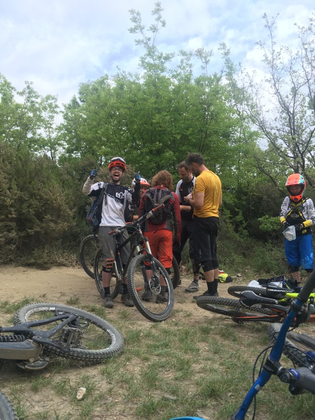 Tuesday was to be a full day guiding with Finale Freeride. Our guide loaded his Intense M16 onto the trailer, we knew it was going to be a day of epic descents! Toboggan was our first stop and my god does it live up to its name. I was on Ian’s tail down this. He would gain on me through some corners and I would get him in others, every time he stalled in a turn I made sure to remind him that it was the 29ers fault! This was a trail to find your flow, coming out of a corner, wheels planted, body shape perfect, head up looking to the next and nailing it is a feeling like no other. This was going to be a good day, or so we thought. Next stop Rollercoaster. Matti our guide sent us on. We knew this trail and he knew to just let us at it. I lead us down the bottom section of Kill Bill and got to the bottom buzzing. A few seconds passed, Ian had been on my tail for most of it. I was in the zone and didn’t notice losing him. Had I taken a wrong turn? As the moments passed I started to worry, someone was down. Brian rolled down and broke the news, Ian had binned it and hadn’t just jumped back up like usual. Eventually he rolled down. He was in a lot of pain but keeping a strong face. Matti and one of our fellow group members got to it and started patching him up. It wasn’t the cuts that were the problem, his shoulder was in a bad way. Ian, our leader, the one person who had probably taught me more about biking than any other was out of the game. This was a not so subtle reminder that we weren’t invincible and mountain biking is a dangerous game. It took a while to get back into it. The atmosphere was a bit shit in the afternoon. It turns out me leading the way is not a good idea. Eddie binned it over a small rise into a corner whilst on my tail. His thumb was mangled! Disaster. Back at the apartment we regrouped. Ian was out for the week and potentially longer. Eddie had a gammy thumb but with ample strapping he might make it out another day.